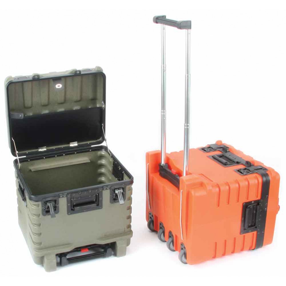 The 8.5 Front Pull (wheeled) case is our most durable case that will carry the heaviest loads. The (4) wheels are mounted on the 18" back of the case for stability. The telescopic handle extends to 42" with tubes 8.5" wide, 4 sealed ball bearing wheels, 5 year guarantee on the case.RAW 8.5 FRONT PULL WHEELED CASE comes in 4 depths, 6 colors, and |