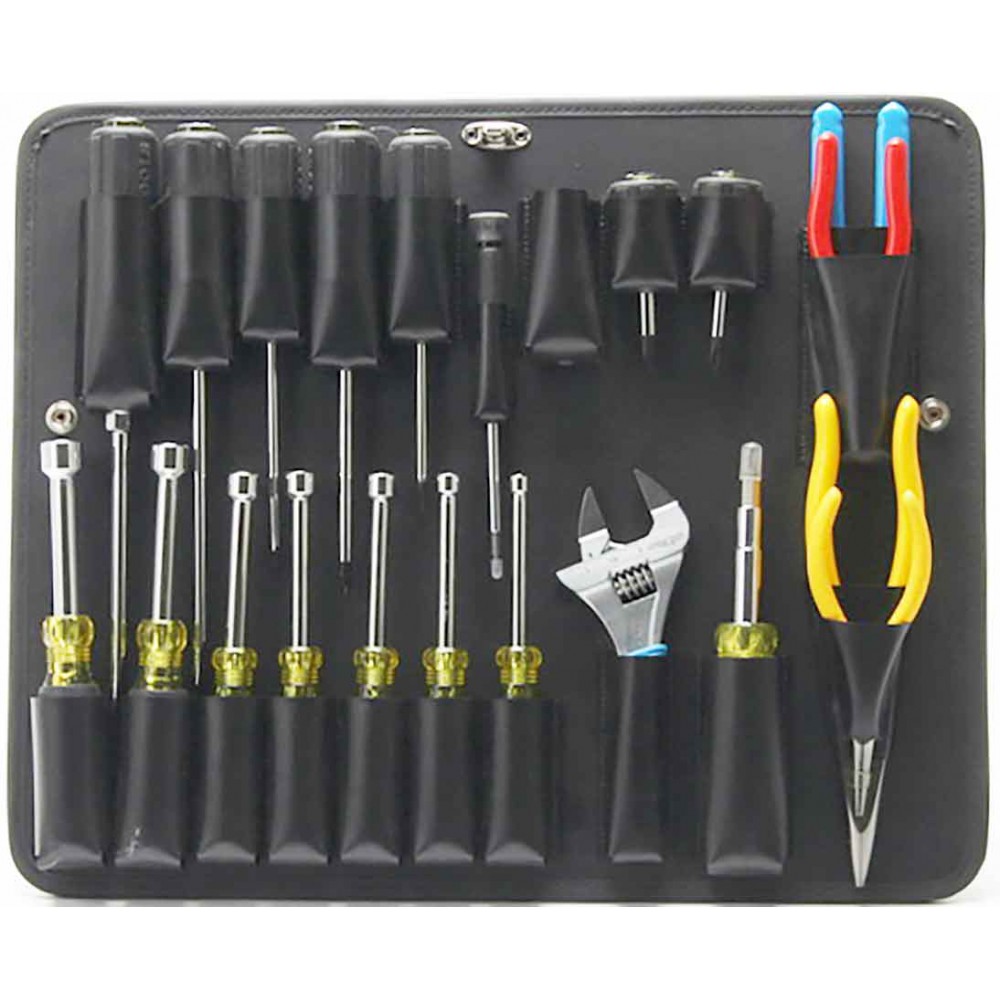 22 pockets for screwdrivers, nutdrivers, and pliers. This top pallet includes 2 velcro flap pockets on the back.